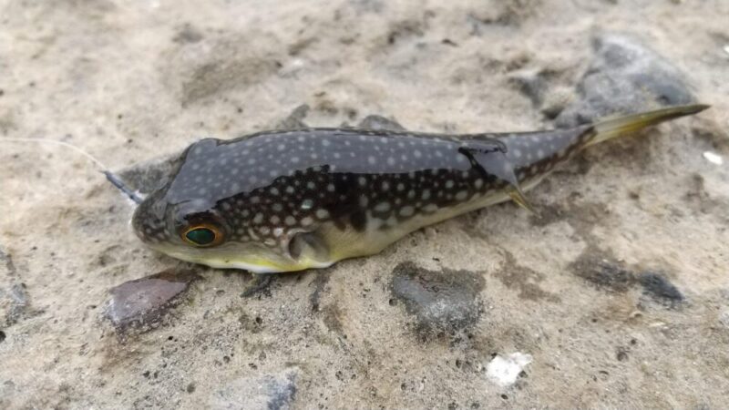 数時間にわたり、ただひたすらにフグと向き合い、エサを付け替え続ける不毛な時間が過ぎていきました。時刻は午後4時。辺りが夕闇に包まれ始めた「夕マズメ」のゴールデンタイムですが、海の中は相変わらずフグの気配で満ちています。ただ、釣れるフグのサイズは徐々にアップしているのが唯一の希望でした。
